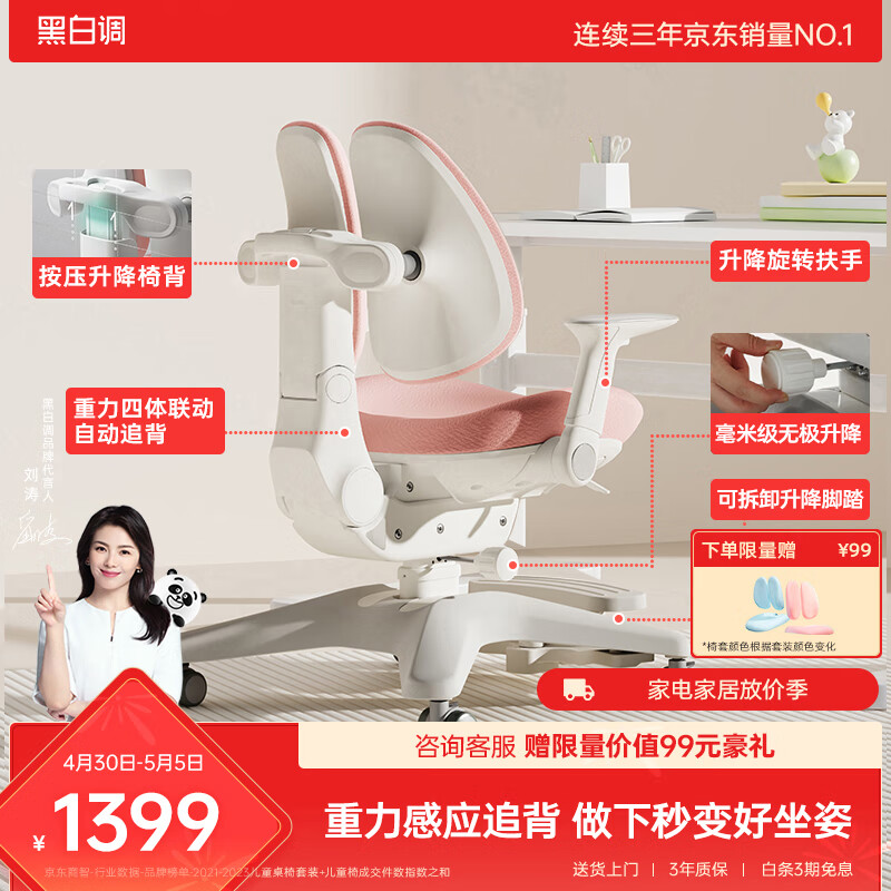 黑白调学习时光G6追背星学习椅【重力感应自动追背正姿】儿童学习椅学生椅子 粉价格:1399.00元!
