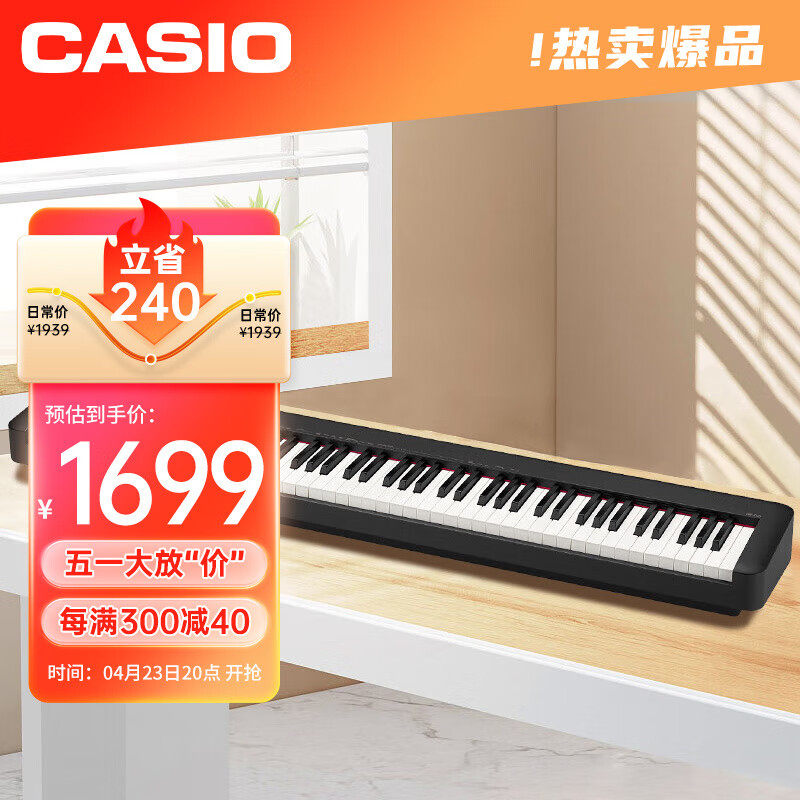 卡西欧(CASIO)电钢琴CDPS110黑色88键重锤数码电子钢琴时尚轻薄便携单机款价格:1939.00元!