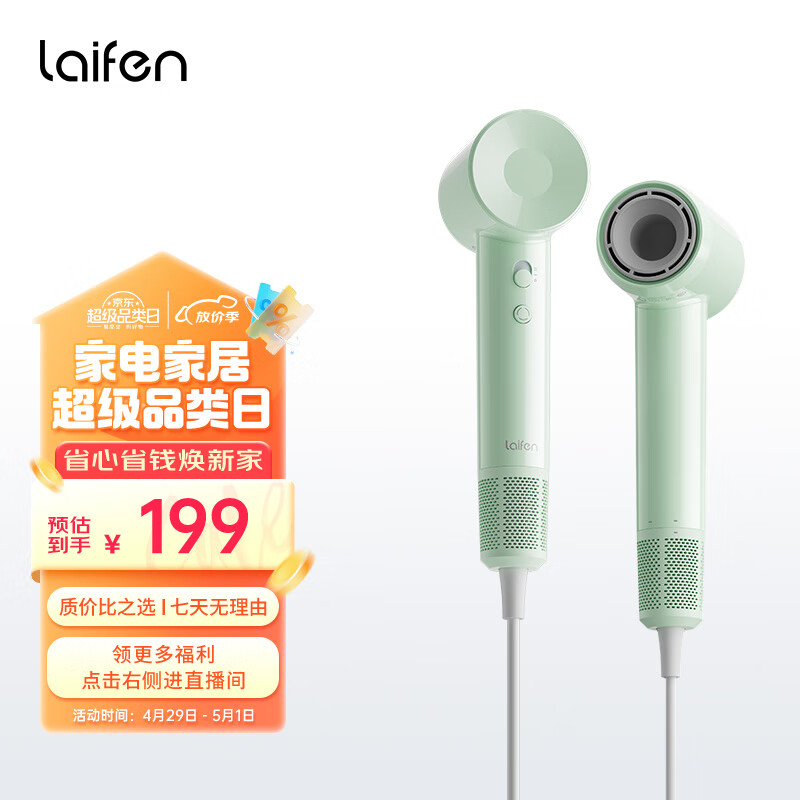 徕芬Laifen SE Lite 家用入门款高速吹风机 莱芬大风力速干低噪音学生宿舍便携风筒 SE lite绿色价格:300.00元!