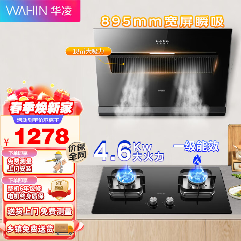 华凌 美的出品 抽油烟机 烟灶套装 18立方米大吸力 家用HJ03烟灶套装 4.6kW灶具液化气灶 HJ03+HQ8液价格:1278.00元!