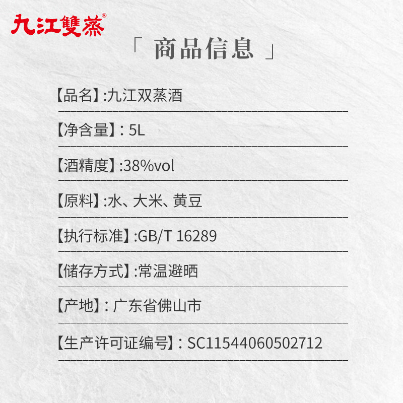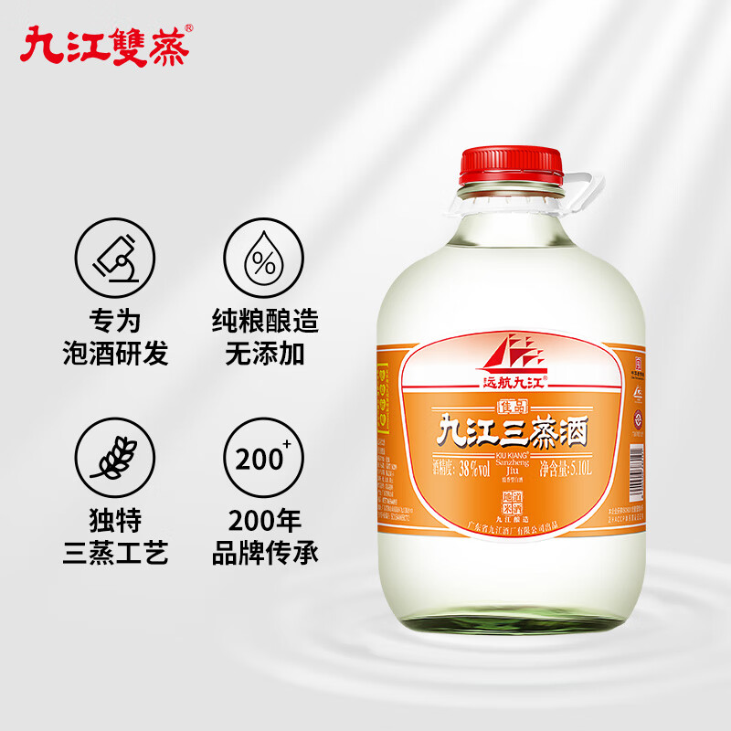 九江双蒸 豉香型白酒 38度三蒸浸泡酒5.1L 广东米酒浸泡青梅果酒白酒送礼价格:168.00元!