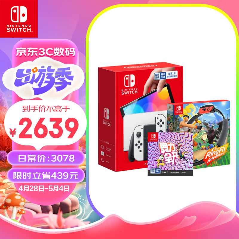 Nintendo Switch任天堂 游戏机国行OLED版游戏主机配白色Joy-Con & 舞力全开兑换卡 & 健身环大冒险 便携游戏掌机价格:2639.00元!