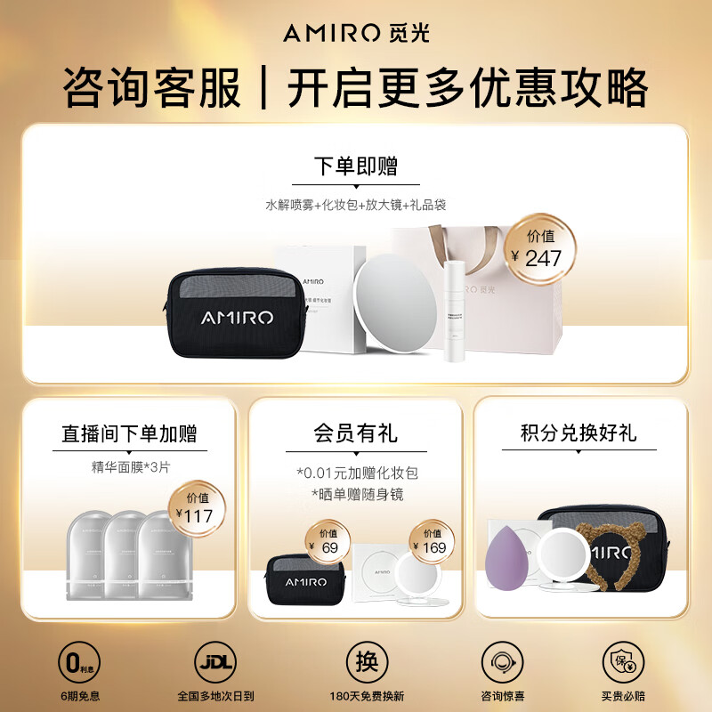 AMIRO觅光化妆镜带灯led日光梳妆美妆镜子补光智能高清台式便捷 生日礼物 送女生送老婆 丝绒红礼盒价格:769.00元!