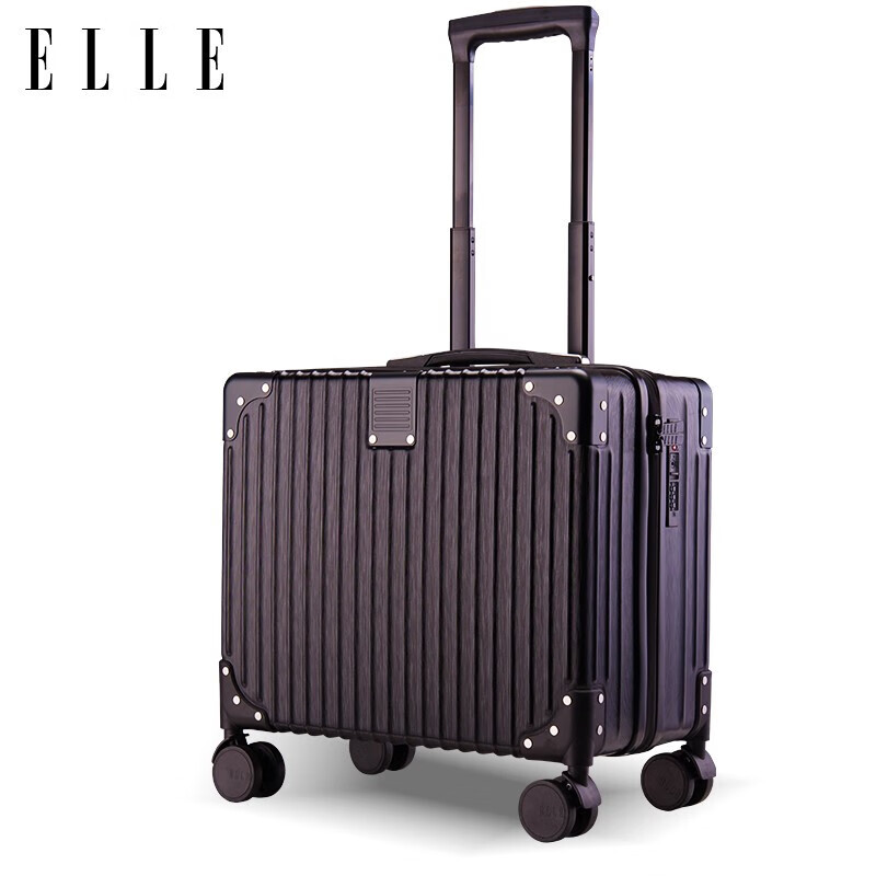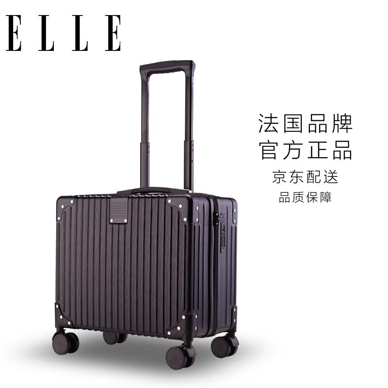 ELLE17英寸黑色行李箱法国品牌自营拉杆箱旅行箱密码箱 防刮耐用万向轮密码锁男女通用价格:239.00元!