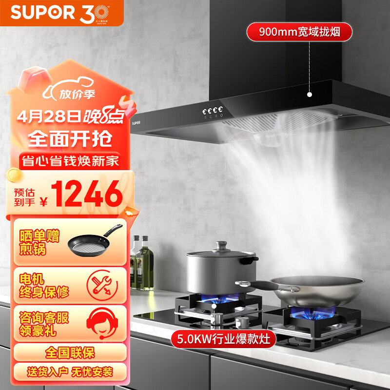 苏泊尔(SUPOR)排油烟机 宽域拢烟大吸力油烟机 家用易清洁欧式顶吸抽油烟机 吸油烟机燃气灶套装DT10+Q5液化气价格:1246.00元!