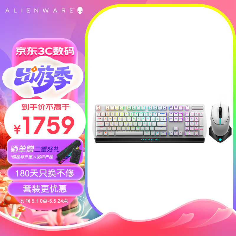 外星人(Alienware)610M+510K 键鼠套装(无线游戏鼠标 有线机械键盘 )RGB高端电竞外设 送男友 送女友 白色价格:1759.00元!