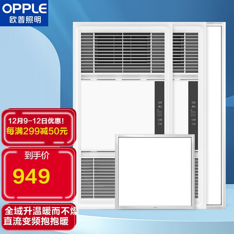 欧普(OPPLE)大功率风暖浴霸暖风机轻触双核强暖集成吊顶浴霸F135-E套餐价格:1099.10元!