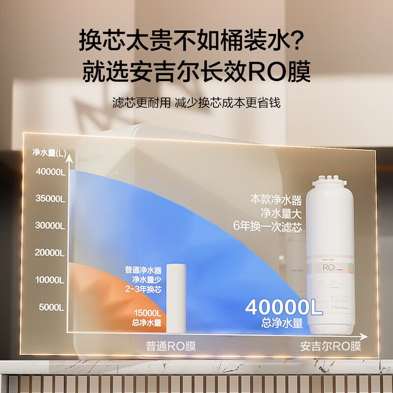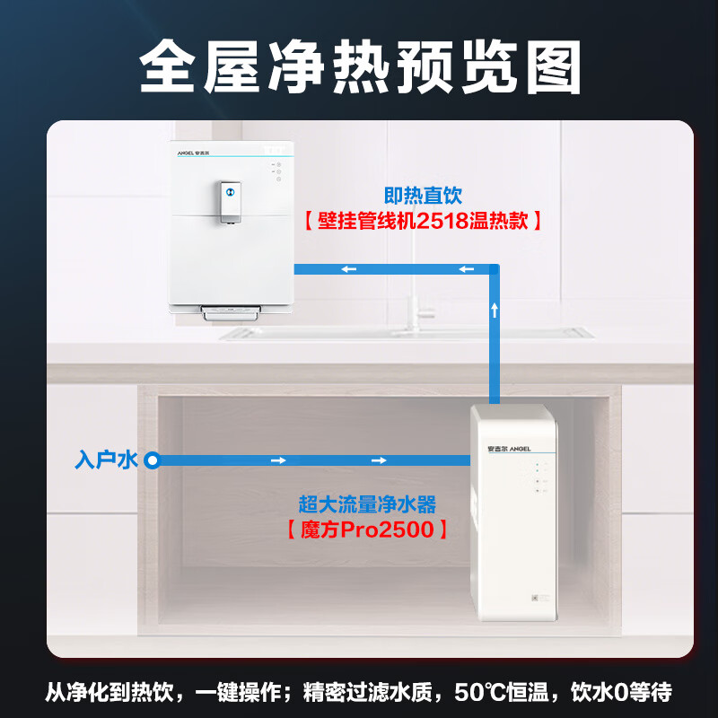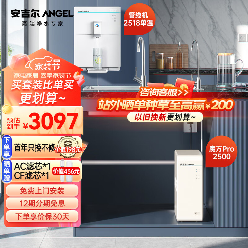 安吉尔净水器家用过滤器套装【魔方pro2500+管线机2518】5年RO反渗透厨下式直饮机2.53L/分价格:3097.00元!
