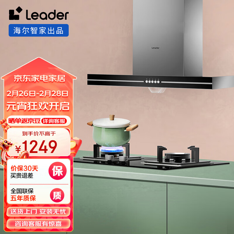 Leader海尔智家出品 抽油烟机灶具套装 欧式 大吸力 380Pa大风压 顶吸家用厨房抽油烟机IT1902+QIGL2D价格:1249.00元!