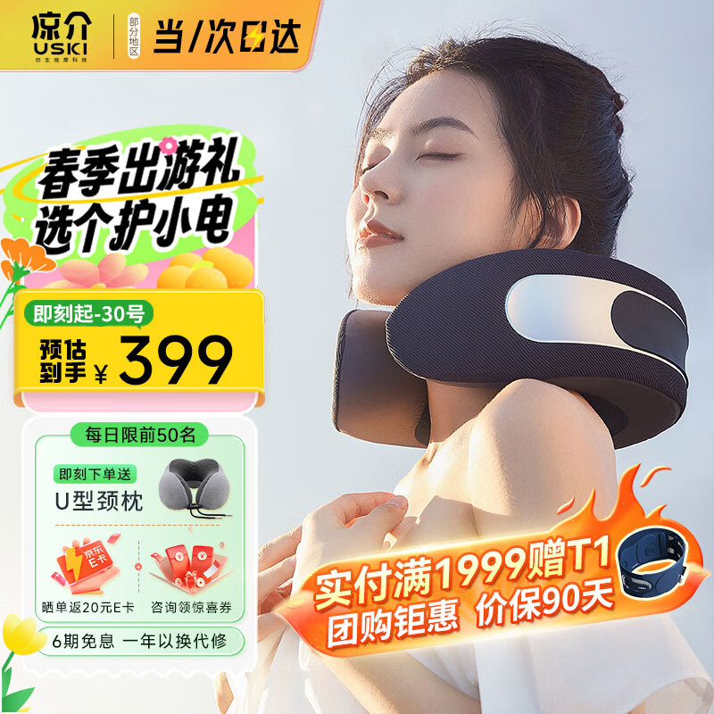 凉介USKI 颈椎按摩器 MT02蓝色 肩颈按摩器 颈部按摩仪仿生揉捏颈部加热 生日礼物女 实用送长辈价格:399.00元!
