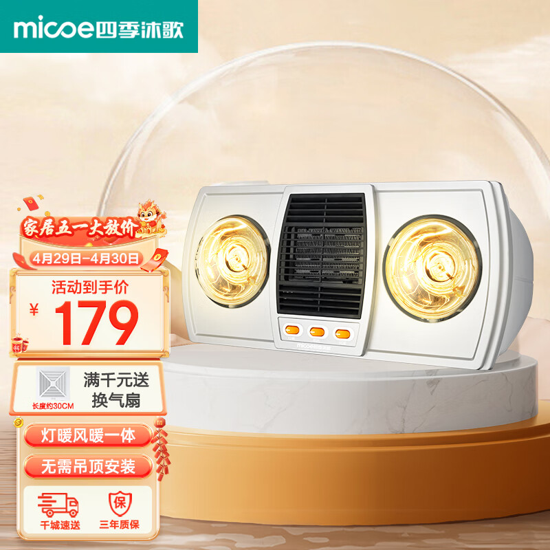 四季沐歌(MICOE)壁挂式灯暖风暖灯暖一体浴室暖风机卫生间取暖器浴霸灯泡灯风双暖价格:189.00元!