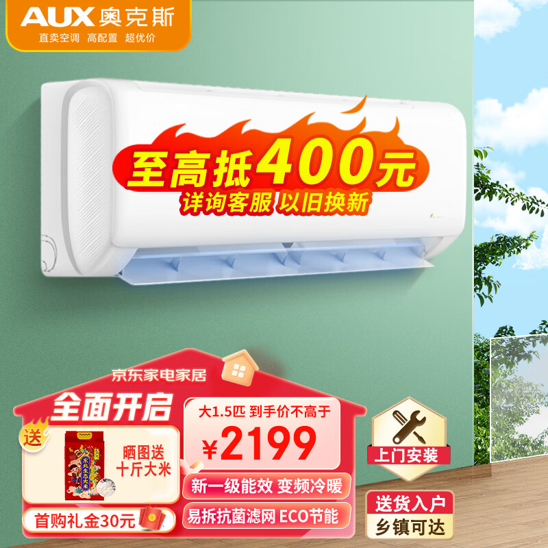 奥克斯(AUX)空调 大1.5匹新一级能效 变频冷暖挂机 易拆洗滤网 壁挂式空调KFR-35GW/BpR3AQF19(B1)[家电]价格:2199.00元!