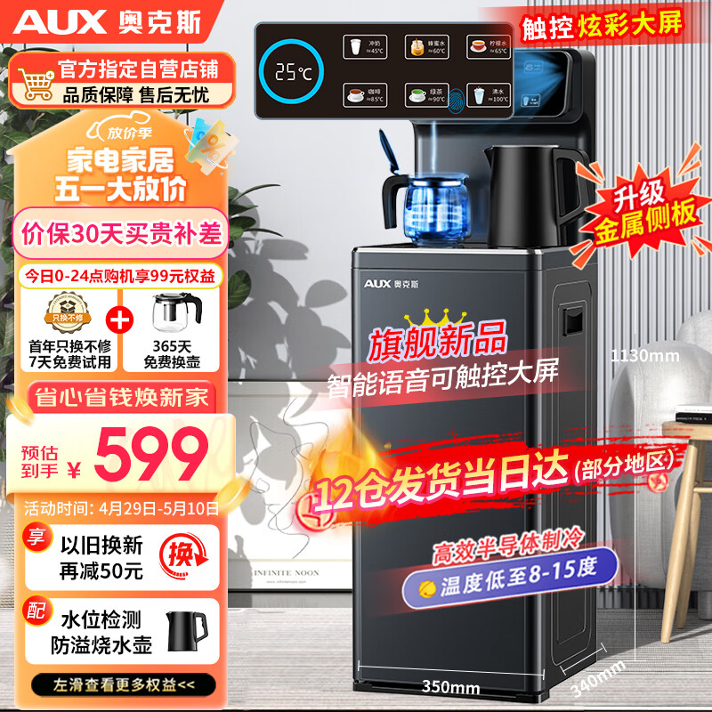 奥克斯(AUX)家用智能语音控制 饮水机升级大款彩屏触控可多档调温 水位检测加厚侧板冷热型茶吧机YCB-0.75-59价格:599.00元!