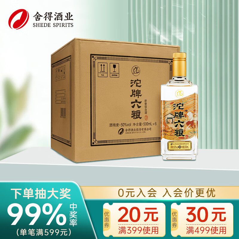 沱牌 舍得 六粮 浓香型白酒 50度 500ml*6瓶 整箱装价格:348.00元!