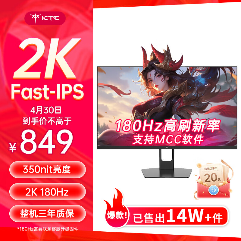 KTC 27英寸2K 180Hz高刷 1毫秒(GtG) 快响 FastIPS屏 外接游戏机笔记本电竞显示屏电脑显示器 H27T22S价格:1299.00元!