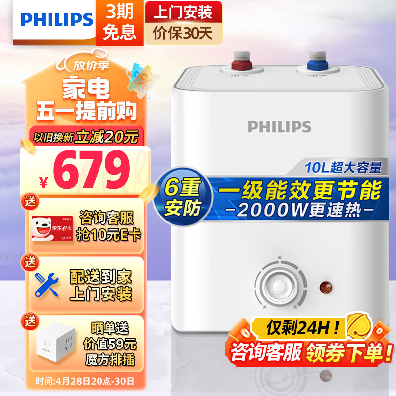 飞利浦(PHILIPS)一级能效10升上出水电热水器迷你小厨宝 小尺寸2000W速热 实时控温AWH1004/93(100UA)价格:779.00元!