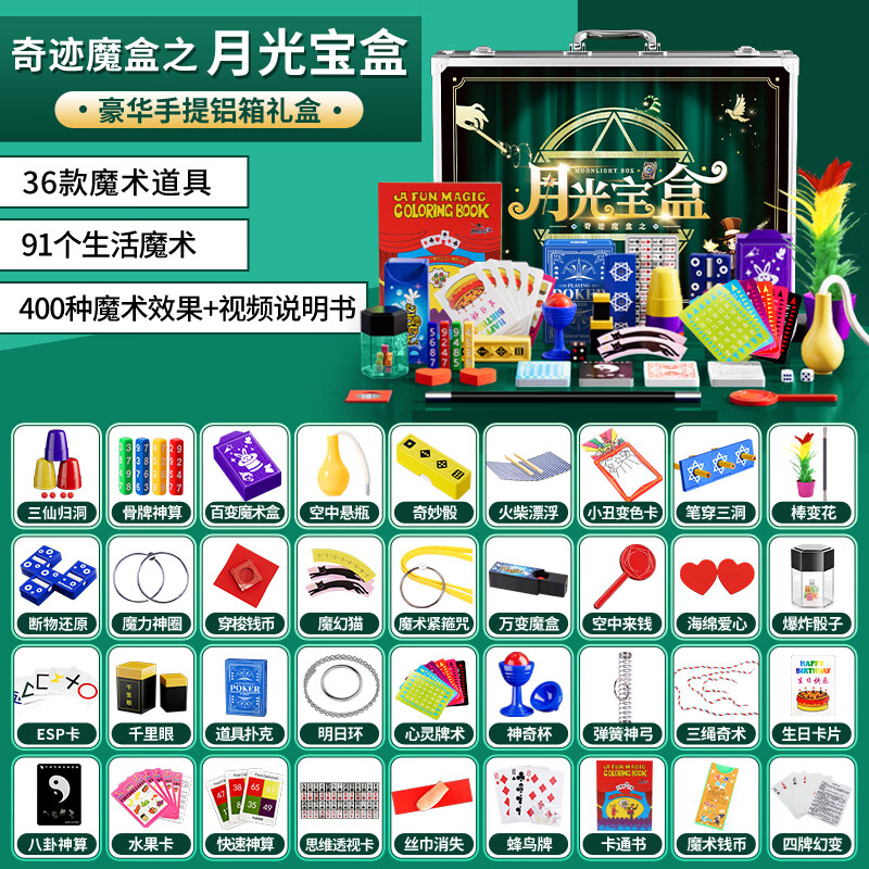 创意猪儿童魔术道具套装大礼盒包高级7-13岁男孩生日礼物12女孩玩具6108 月光宝盒【400种效果+36款道具】价格:218.00元!