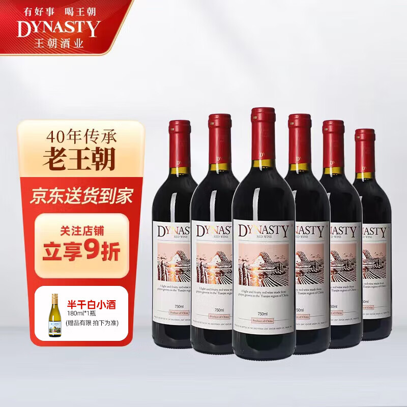 王朝(DYNASTY)干红葡萄酒二代750ml*6瓶 整箱装国产红酒送礼价格:286.00元!