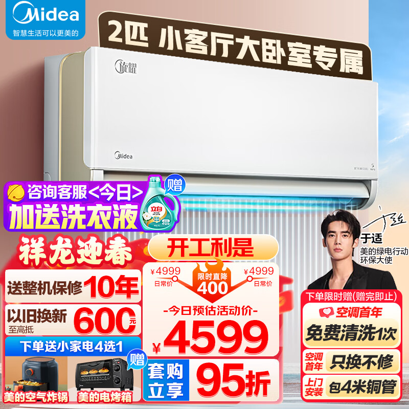 美的(Midea)2匹旋耀 新能效变频冷暖 大风量自清洁 智能客厅商铺壁挂式空调挂机 KFR-50GW/N8MXA3 以旧换新价格:4599.00元!