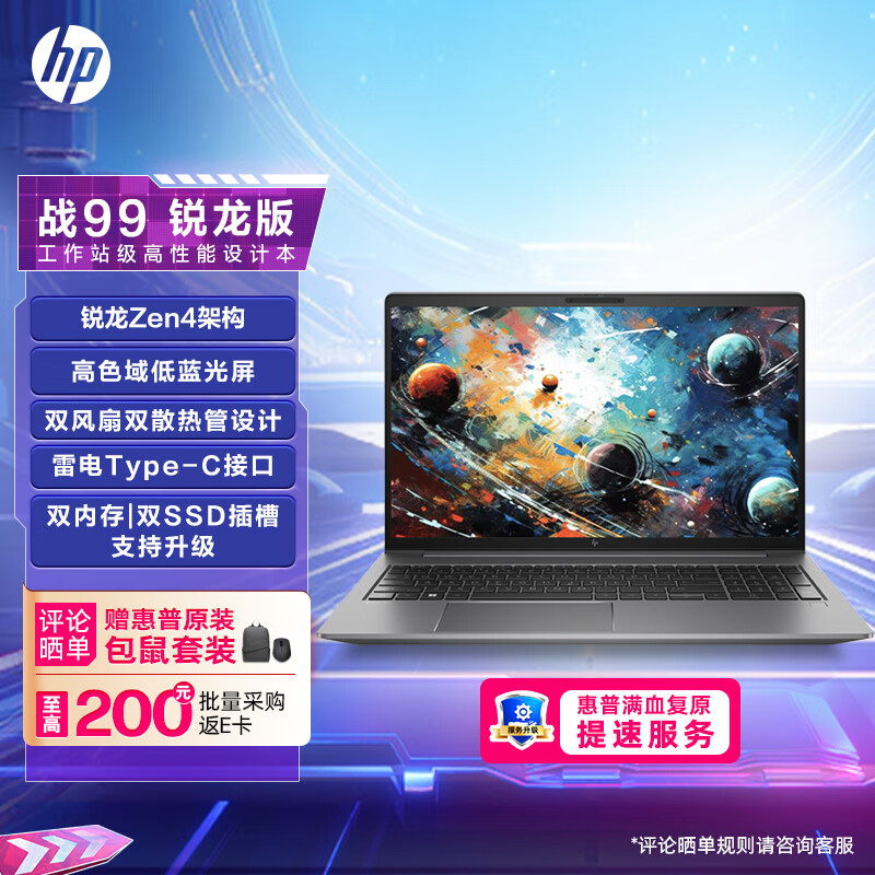 惠普(HP)战99 4nm锐龙 15.6英寸高性能笔记本AI电脑设计师本 R5-7640HS 16G 512 高色域价格:4899.00元!