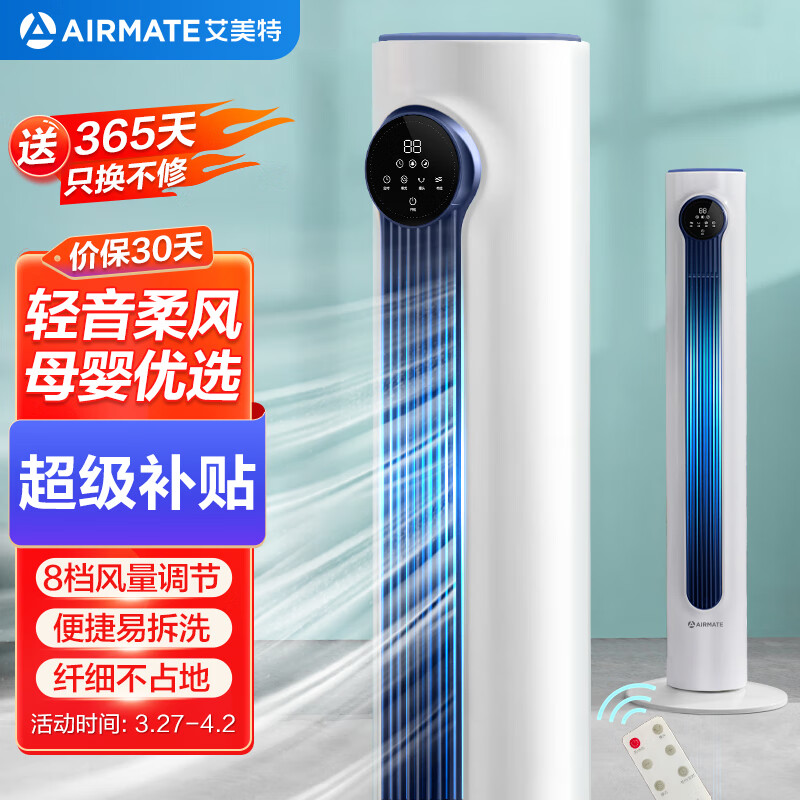 艾美特(AIRMATE)无叶柔风智能遥控塔扇家用节能电风扇轻音定时无叶风扇落地广角摇头自然风循环空气电风扇 CT-R9价格:247.00元!