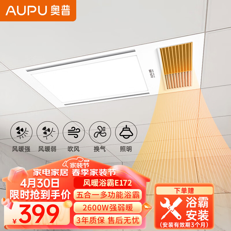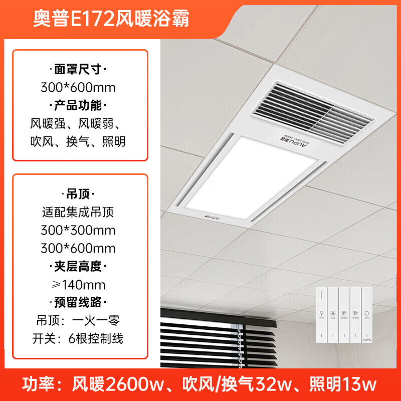 奥普(AUPU)浴霸E172风暖浴霸 纤薄浴霸 强弱风暖 大照明 适配集成吊顶价格:549.00元!
