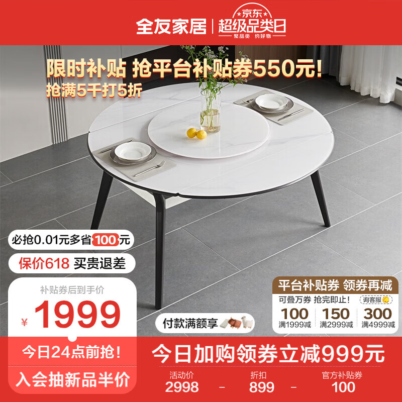 全友家居?轻奢钢化玻璃折叠餐桌椅组合可伸缩家用桌子饭桌家具DW1059价格:2998.57元!