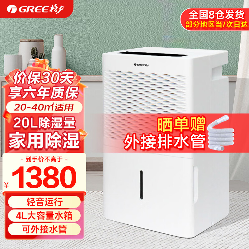 格力(GREE) 除湿机家用地下室卧室客厅抽湿机低噪干衣智控除湿器吸湿器小档案室干燥机20升 20L/天 20-40㎡价格:1380.00元!