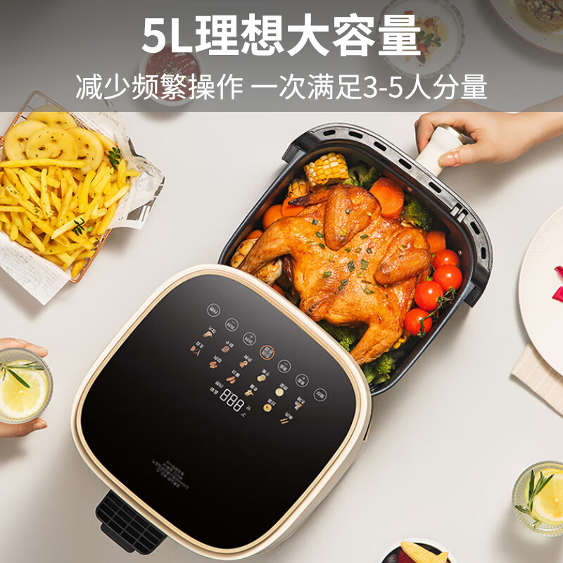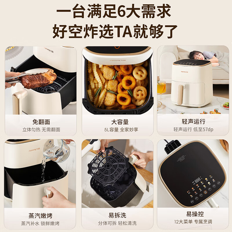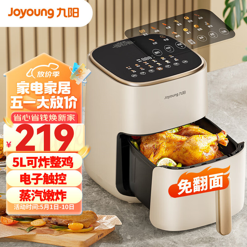 九阳(Joyoung)不用翻面 电子触控 高效烘烤 蒸汽嫩炸空气炸锅 家用5L大容量 薯条机电炸锅 KL50-V516价格:219.00元!