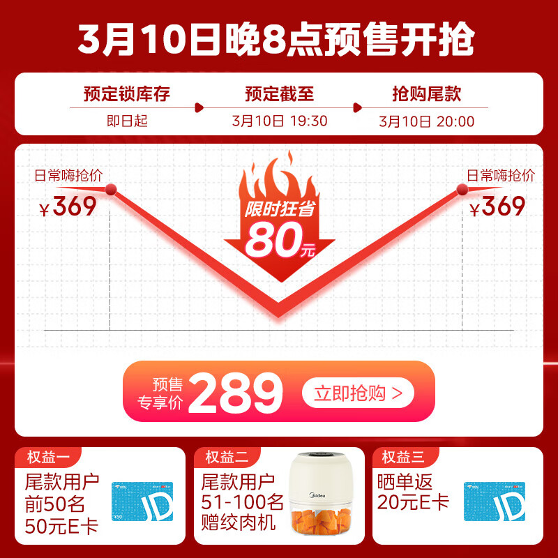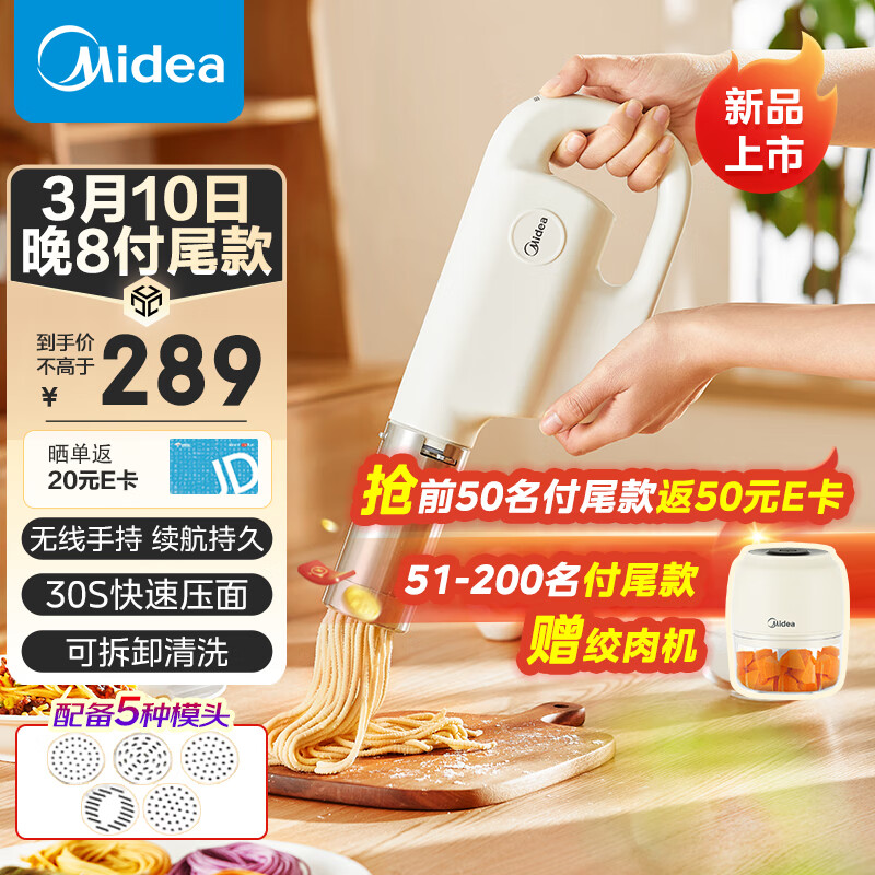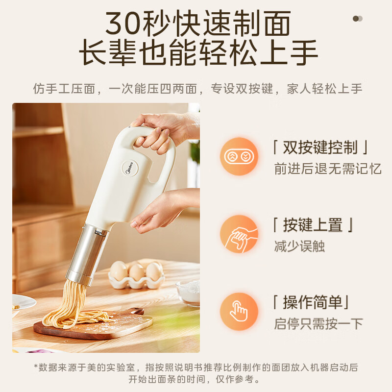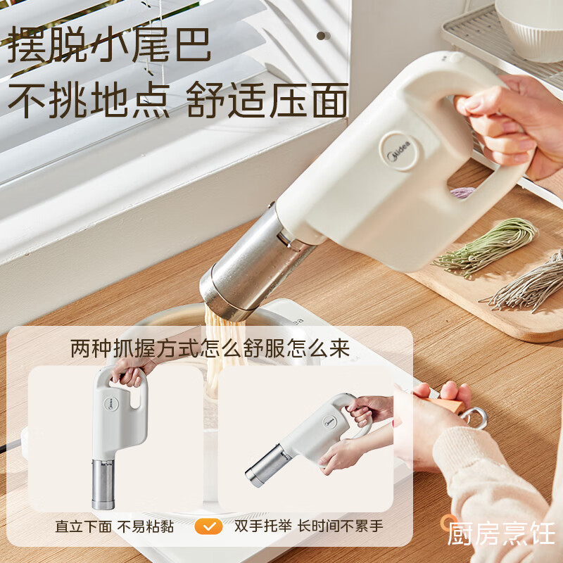 美的(Midea)面条机 家用电动小面枪 手持压面枪 无线便携小型自动不锈钢压面条机 MJ-GJ23五种出面模具价格:289.00元!