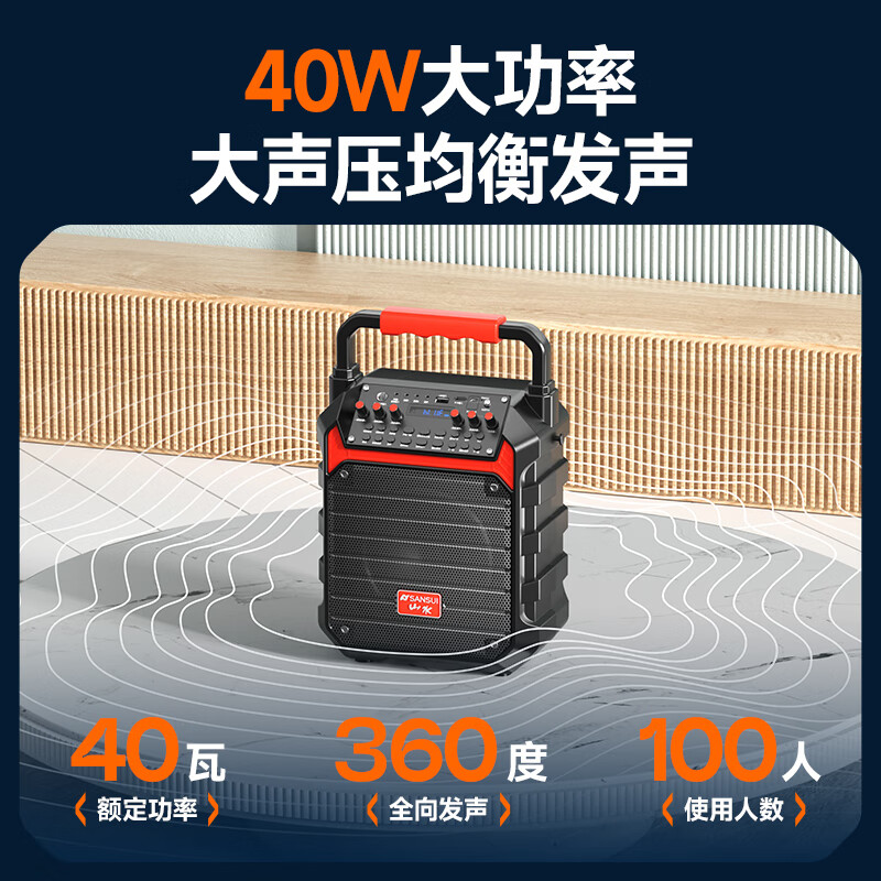 山水(SANSUI)D35广场舞音响户外K歌直播带声卡超重低音炮大音量手提便携式蓝牙音箱小型播放器大功率无话筒价格:359.00元!