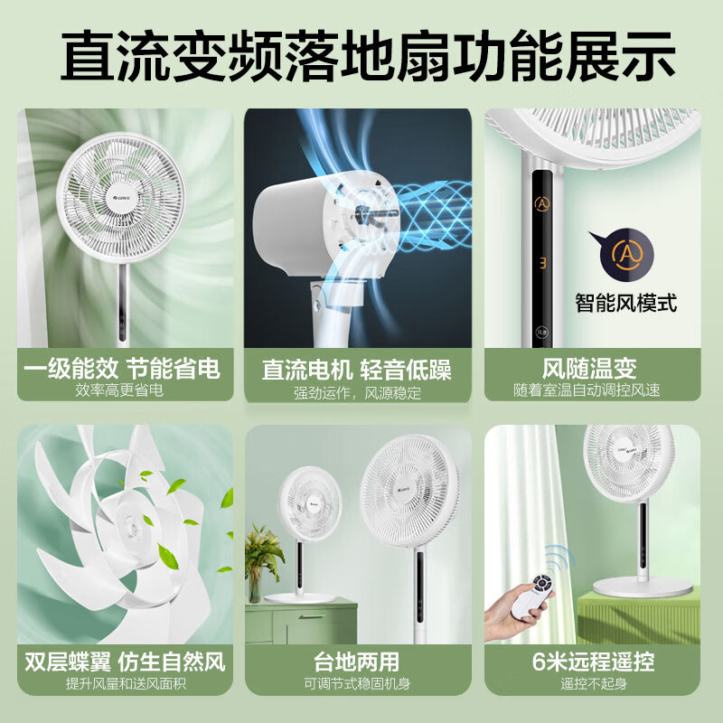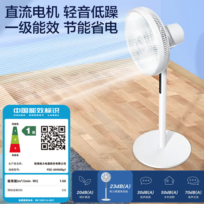 格力(GREE)电风扇一级能效落地扇直流变频节能触控广角摇头定时遥控智能电扇台地两用节能风扇 FSZ-30x65Bg7价格:339.00元!