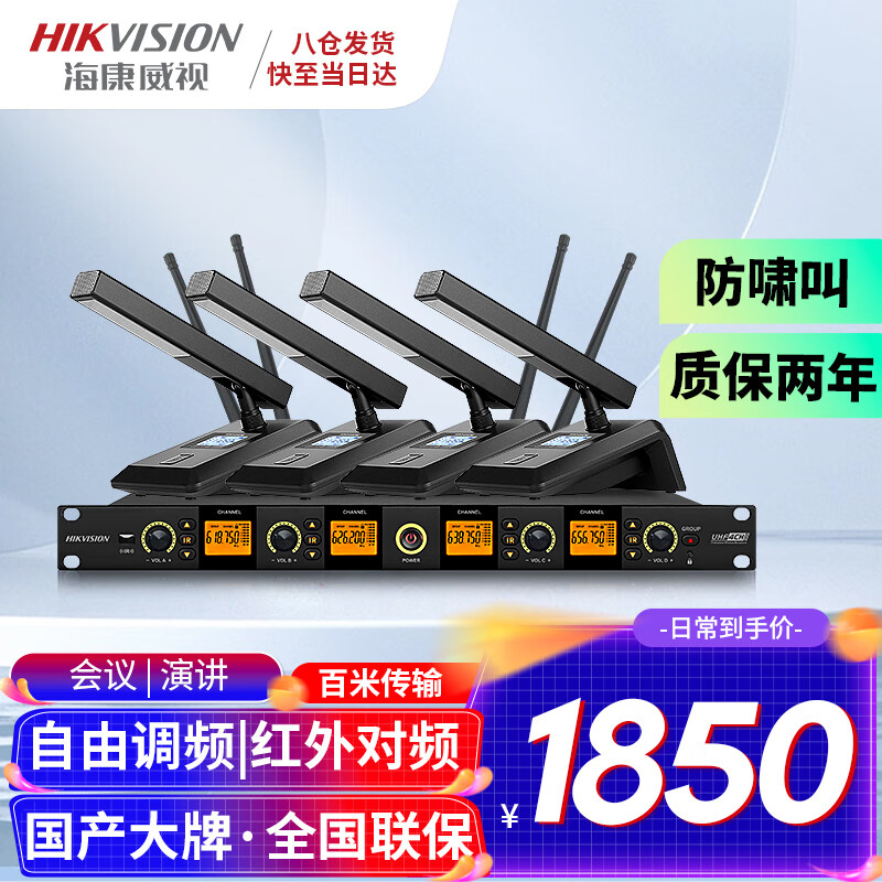 海康威视会议一拖四无线麦克风桌面短杆方管话筒主席台UHF高保真抗干扰自动对频不串台防啸叫演讲培训广播价格:1850.00元!