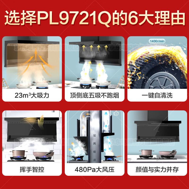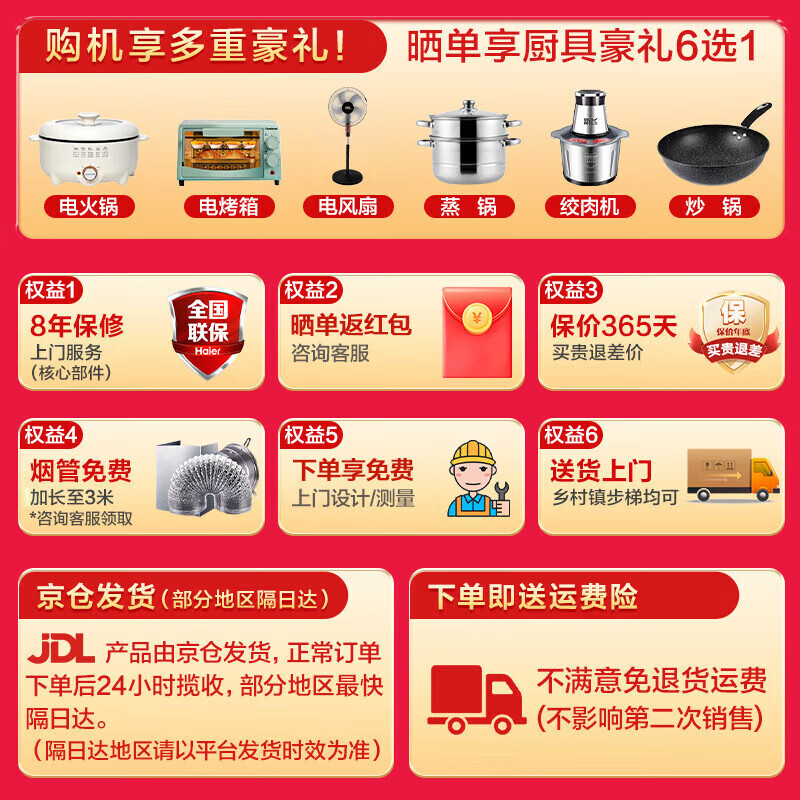 海尔(Haier)智家出品抽油烟机燃气灶套装23m3挥手智控PL9721Q+5.2KW灶Q2BE50+16升热水器16K3BD厨房三件套价格:3449.00元!