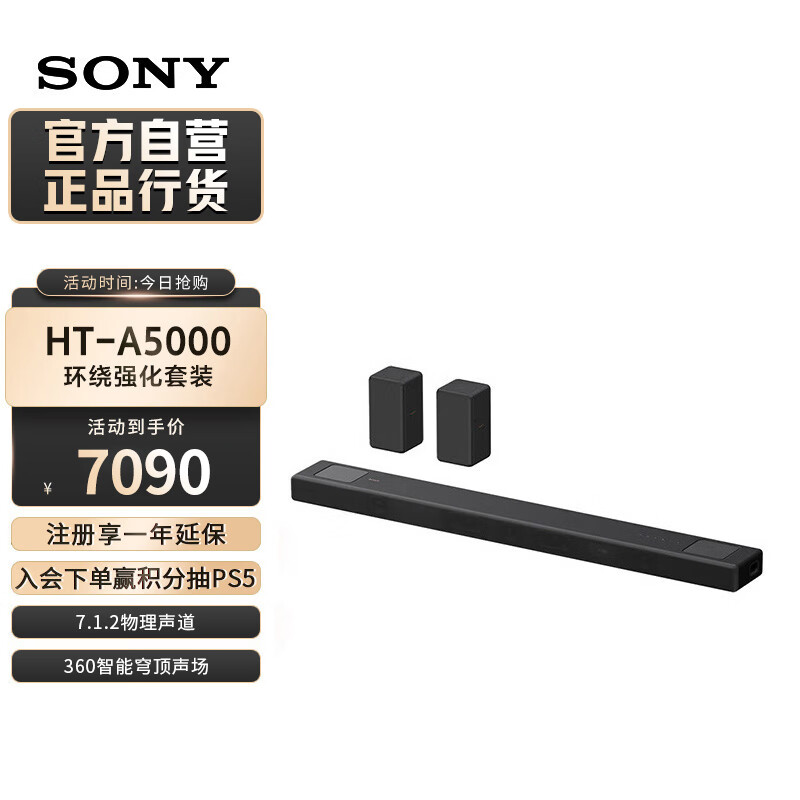 索尼(SONY)HT-A5000+RS3S 环绕强化套装 7.1.2 全景声 回音壁 4K120Hz VRR ALLM 壁挂 家庭影院 无线音响价格:7090.00元!