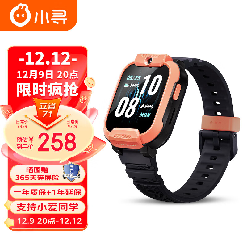 小寻 儿童电话手表T5 智能儿童手表女孩 学生电话长续航 定位视频通话拍照小爱同学 防水手表儿童礼物 蜜柚粉价格:258.00元!