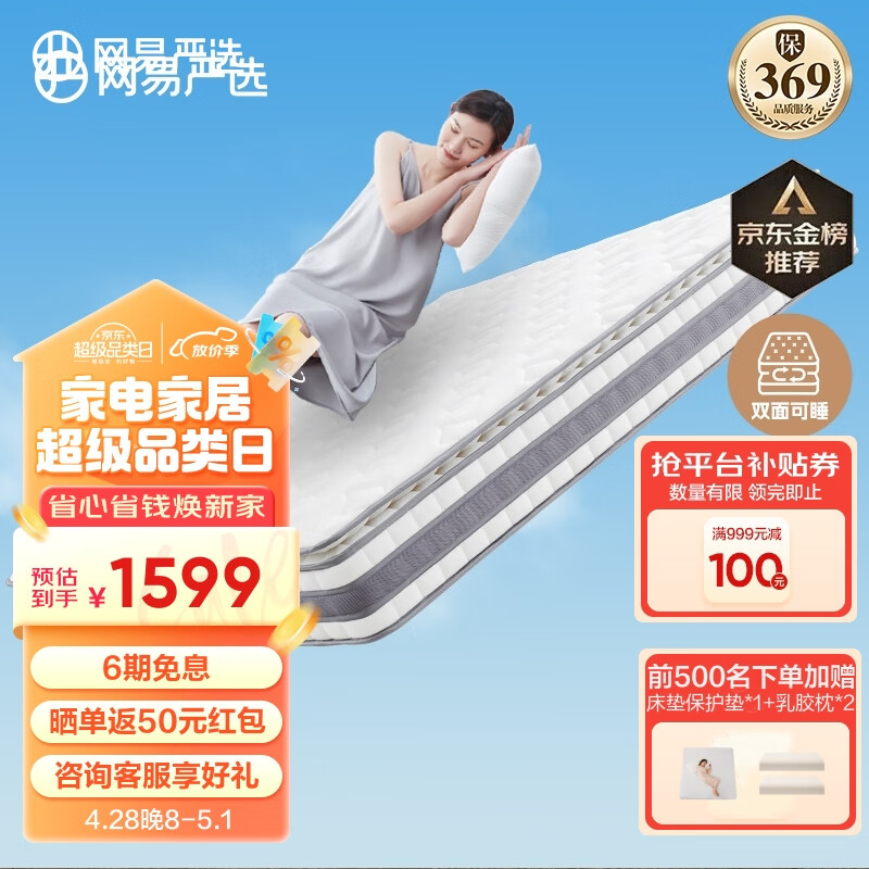 网易严选AB面弹簧床垫1.8*2米 乳胶床垫席梦思 奢睡款 抑菌防螨 独袋弹簧价格:1899.00元!