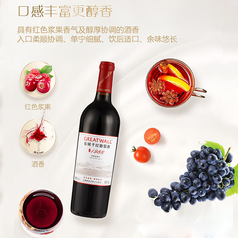 不得不说的是长城葡萄酒外观我比较的喜欢,质量非常的好,这个商品的外观设计非常时尚大气,给人一种高级感。