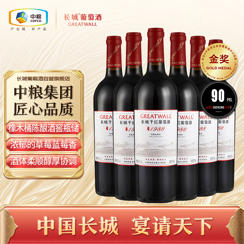 长城 耀世东方 特藏1988高级赤霞珠干红葡萄酒 750ml*6瓶 整箱装价格:348.00元!