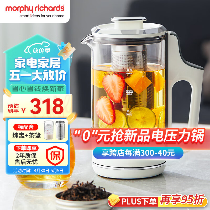 摩飞电器(Morphyrichards)养生壶 分体便携式迷你煮茶器 烧水壶 小型办公室家用 多功能煮茶壶分体式热水壶0.6L MR6085 白价格:358.00元!