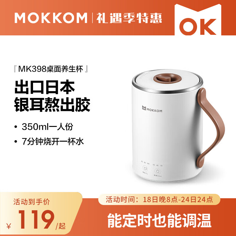 mokkom磨客养生壶桌面迷你养生杯电热水杯热水壶家用旅行便携煮茶器小型花茶壶熬粥煲汤MK398牛奶白价格:119.00元!