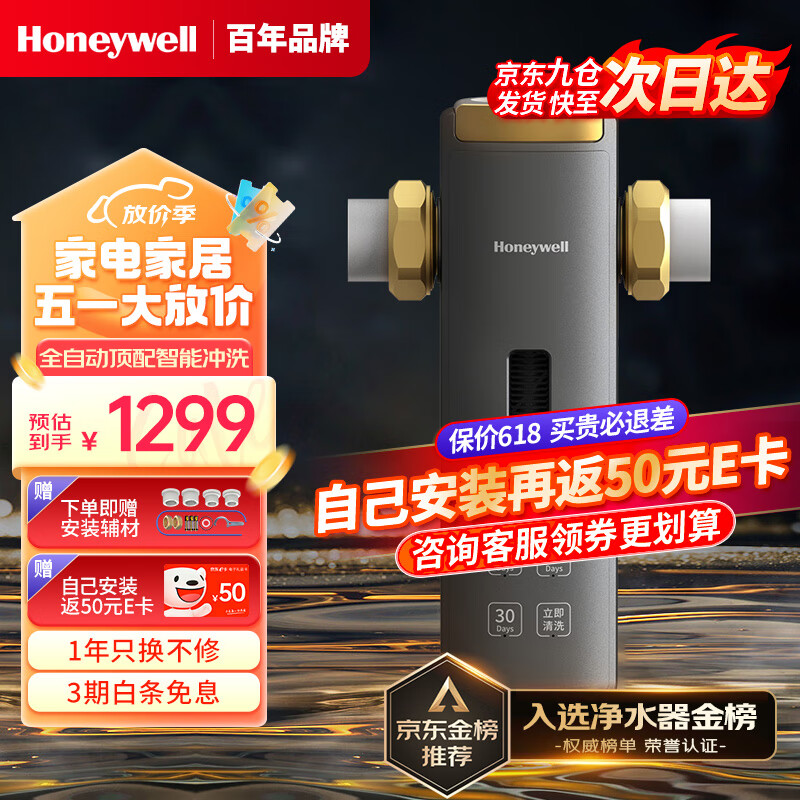 霍尼韦尔(Honeywell)全自动前置过滤器 表监控 自动反冲洗 半万向前置 全屋家用净水器 40微米精滤 PFF91X12-EC价格:1299.00元!