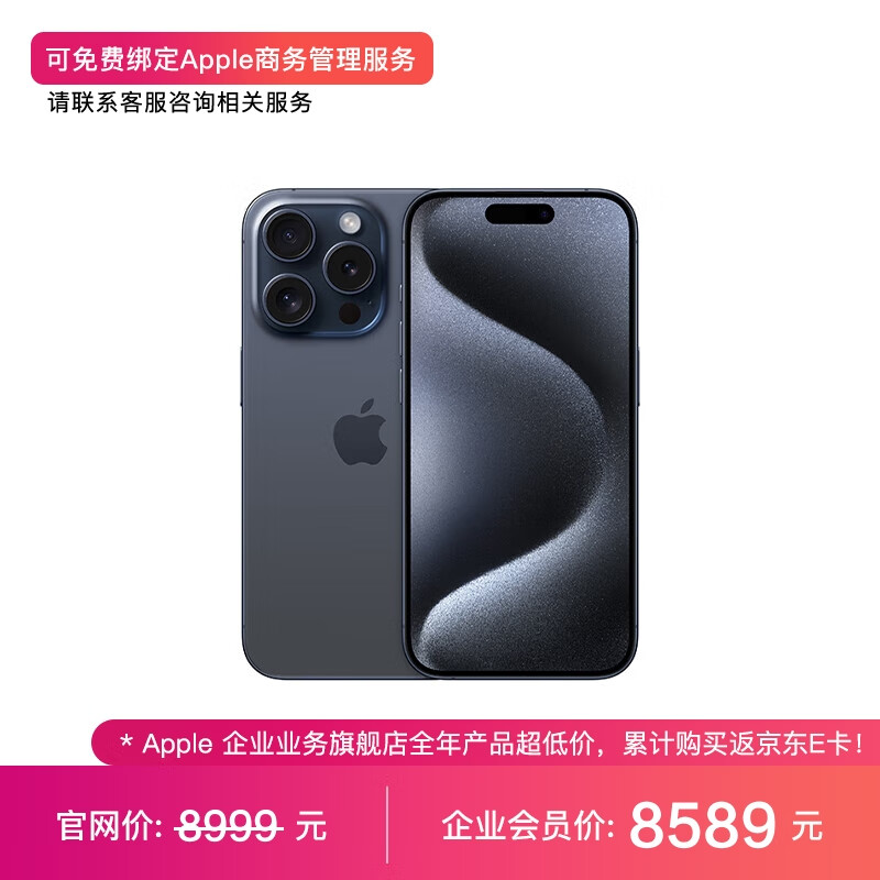Apple iPhone 15 Pro 256GB 蓝色钛金属A3104手机 支持移动联通电信5G MTQC3CH/A【企业客户专享】价格:8999.00元!