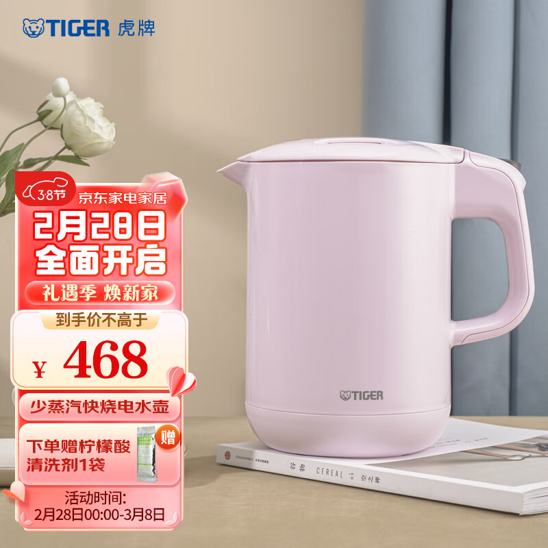 虎牌(Tiger)电热水壶 双层防烫 快烧水壶 PCG-G10C 1L电水壶 粉色价格:508.00元!