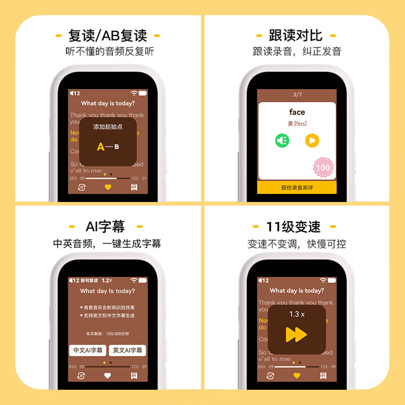 听力熊T4复读机英语学习机神器听力机小学初中高中播放器随身听口袋听力宝好学多32G价格:398.00元!