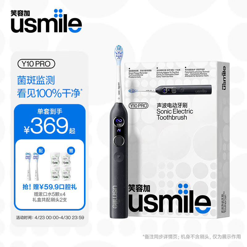 usmile笑容加电动牙刷 成人声波震动电动牙刷 情侣款送男友/送女友 Y10PRO曜黑 生日礼物价格:402.00元!