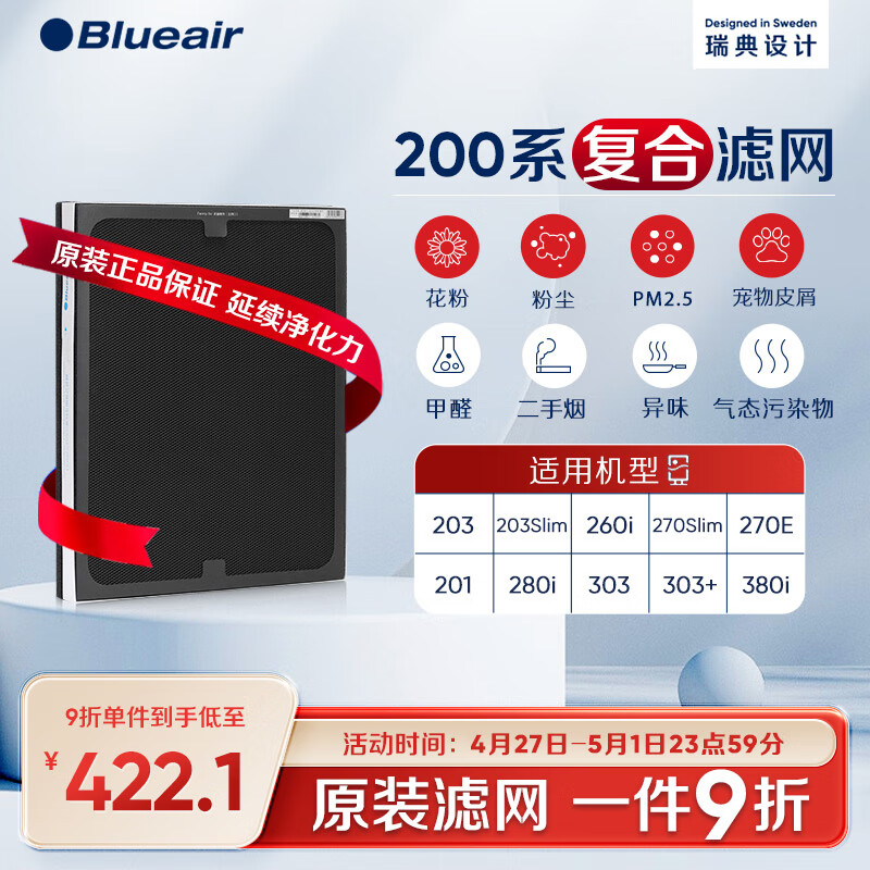 布鲁雅尔Blueair空气净化器过滤网滤芯 NGB复合滤网适用270E/303/303+【配件】价格:469.00元!