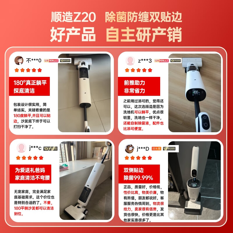 顺造洗地机180度平躺Z20 平拖洗地机洗拖一体自动清洗家用 除菌吸拖一体手持吸尘洗地机价格:1699.00元!