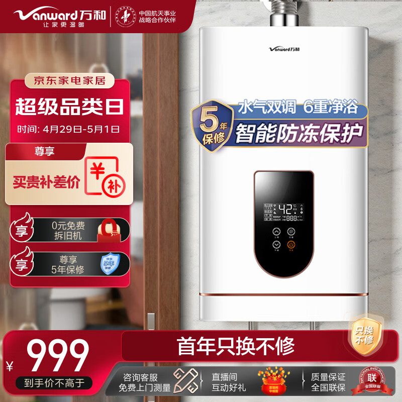 万和(Vanward)16升燃气热水器天然气感温水气双调精控恒温智能防冻保护6重健康浴JSQ30-520J16价格:999.00元!