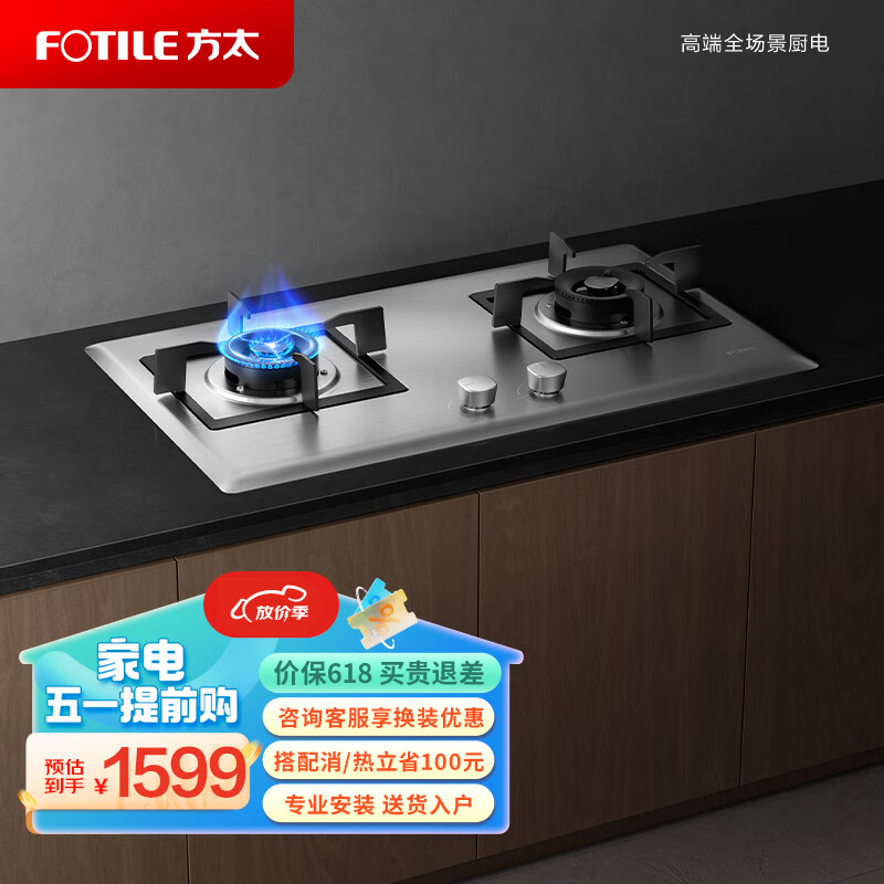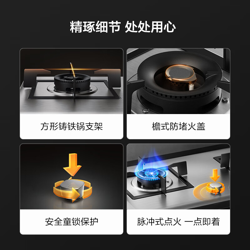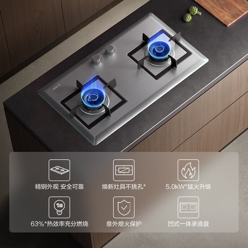 方太燃气灶(天然气)家用嵌入式不锈钢灶具 5.0kW*大火力双灶头 换装不改孔 02-TH25G价格:1599.00元!